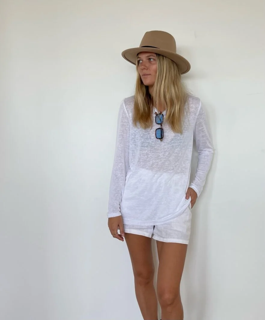חולצה ניקי פשתן קקאו לבן